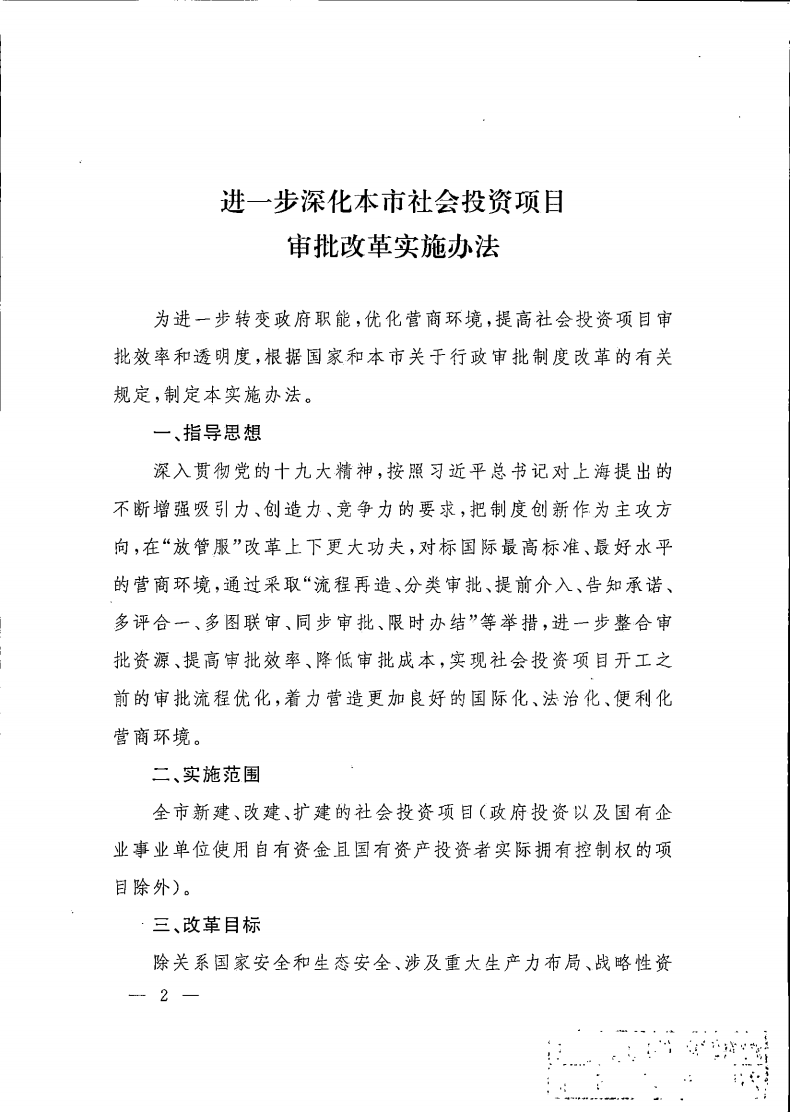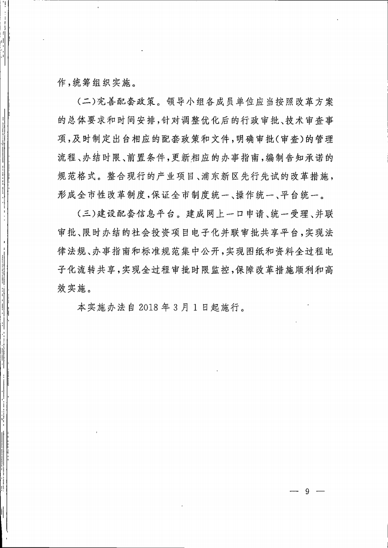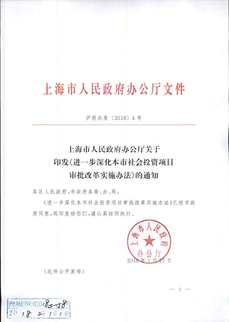 上海市人民政府办公厅关于印发《进一步深化本市社会投资项目审批改革实施办法》的通知(沪府办发〔2018〕4 号 ) 2018-05-20