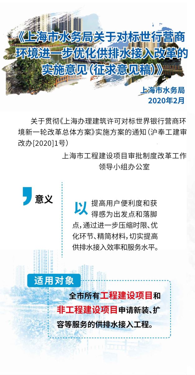《上海市水务局关于对标世行营商环境进一步优化供排水接入改革的实施意见(征求意见稿)》