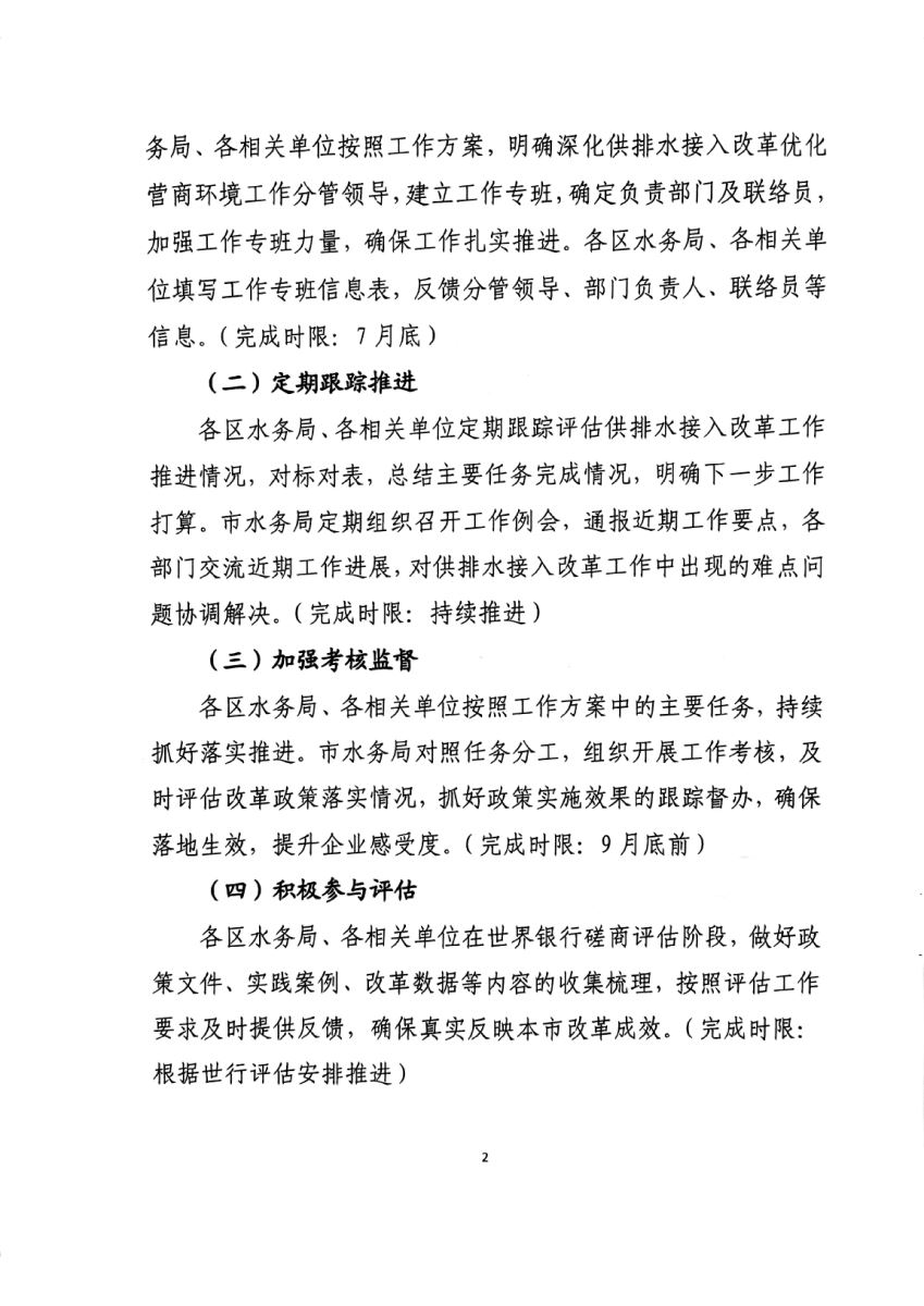 上海市水务局印发《关于深化供排水接入改革持续优化营商环境工作方案》的通知