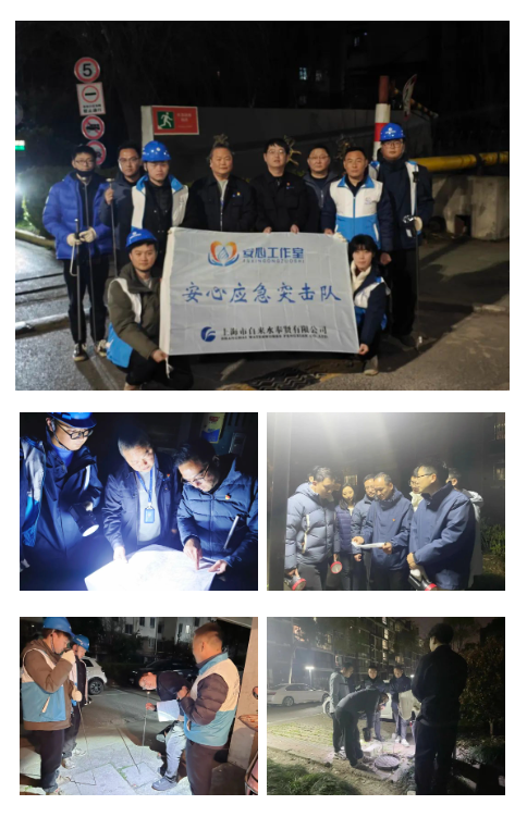公司安心应急突击队分别在四团镇平安新苑、南桥镇正阳社区开展夜间查漏活动。通过对照施工图纸精确寻找管网走向、阀门位置,使用查漏棒沿管线辨别,当晚共查到漏点4处,并通知对应站点及时修复,挽回总漏损量3吨/小时。南供所党政班子成员共同参加。