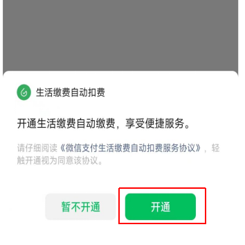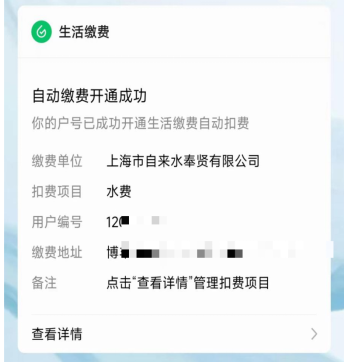 第七步,等待微信支付弹出自动缴费开通成功通知,成功开通微信生活缴费水费代扣